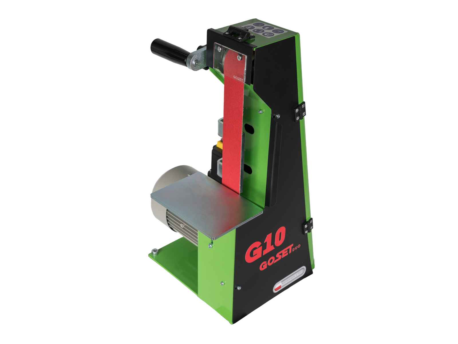 Le modèle G10, peu encombrant et économique, convient parfaitement pour un coutelier débutant. Son moteur puissant, sa conception robuste en font un atout certain à l'atelier.