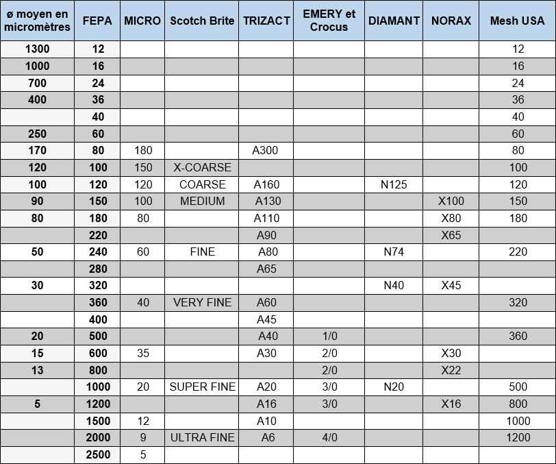 En Europe, la granulométrie des abrasifs est exprimée suivant la norme FEPA (Federation of European Producers of Abrasives).
